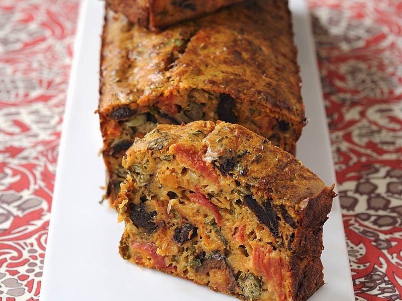 Dégustez le cake tiède avec une petite salade de mâche assaisonnée avec une vinaigrette au balsamique, d’huile d’olive, agrémentée de pignons de pin.