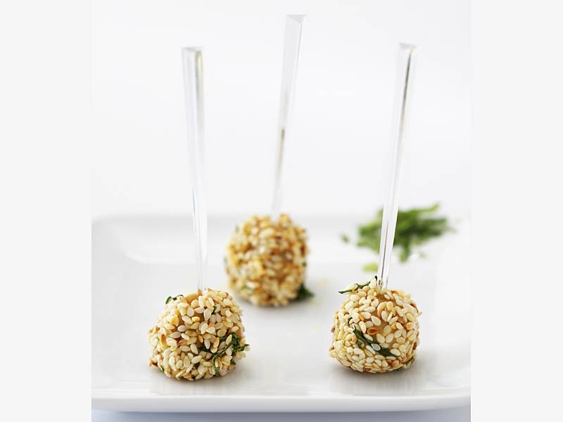 - Roulez la boule dans les graines de sésame et la coriandre